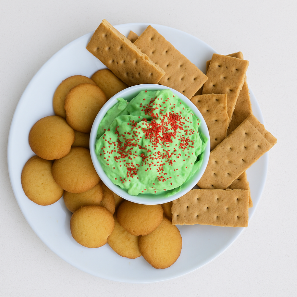 Creamy, fluffy, and festive — this Grinch green dessert dip is perfect for holiday parties!